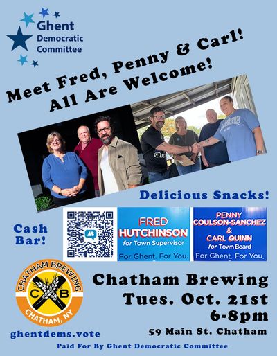 The Ghent Democratic Committee is led by David Bly. As we prepare for Election 2025, we strive to engage citizens and encourage participation in the democratic process, ensuring that every voice is heard as we work together for EVERYONE in the Town of Ghent.